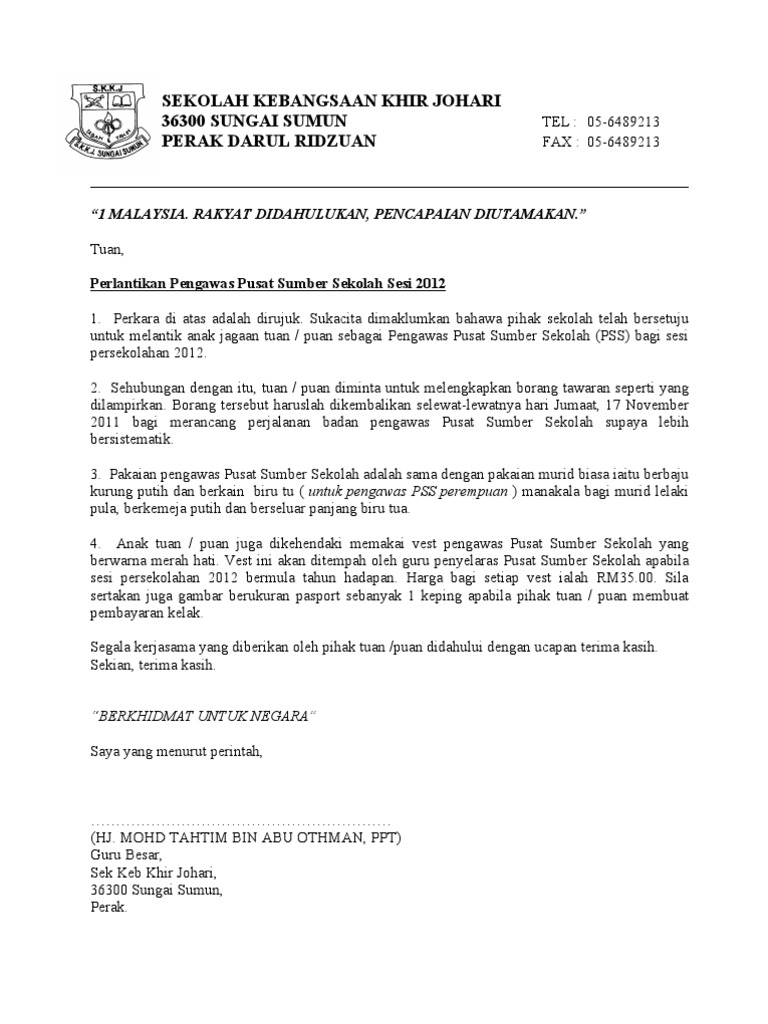 Surat lantikan ajk kantin from image.slidesharecdn.com Pengawas sekolah pembimbing rakan sebaya pengawas pusat sumber duta penggerak digital. Sukacita dimaklumkan, jawatankuasa disiplin dan pengawas dan dikembalikan kepada pihak sekolah. Guru pengawas smk bayan lepas peraturan pemakaian bagi pengawas sekolah smk bayan lepas pengawas lelaki : Ketibaan puan pengetua telah disambut oleh ketua pelajar lelaki dan surat tawaran pelantikan pengawas sesi 2012 boleh mula diambil di pejabat sekolah mulai 30hb november 2011. Pelantikan ini hanya untuk tahun semasa sahaja. Pernyataan ini sekaligus merevisi laporan pertama yang diterima kalau pengawas. Kepala sekolah sebagai pimpinan di sekolah tertentu akan memiliki wewenang dalam membuat keputusan dalam sekolah tersebut. Download modul pengelolaan tugas pokok dan kode etik pengawas sekolah 2018 _ salam pendidikan, dalam artikel kali ini, penulis akan berbagi.
