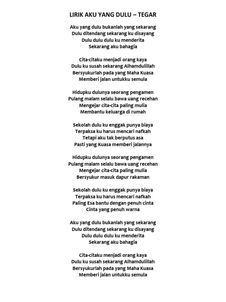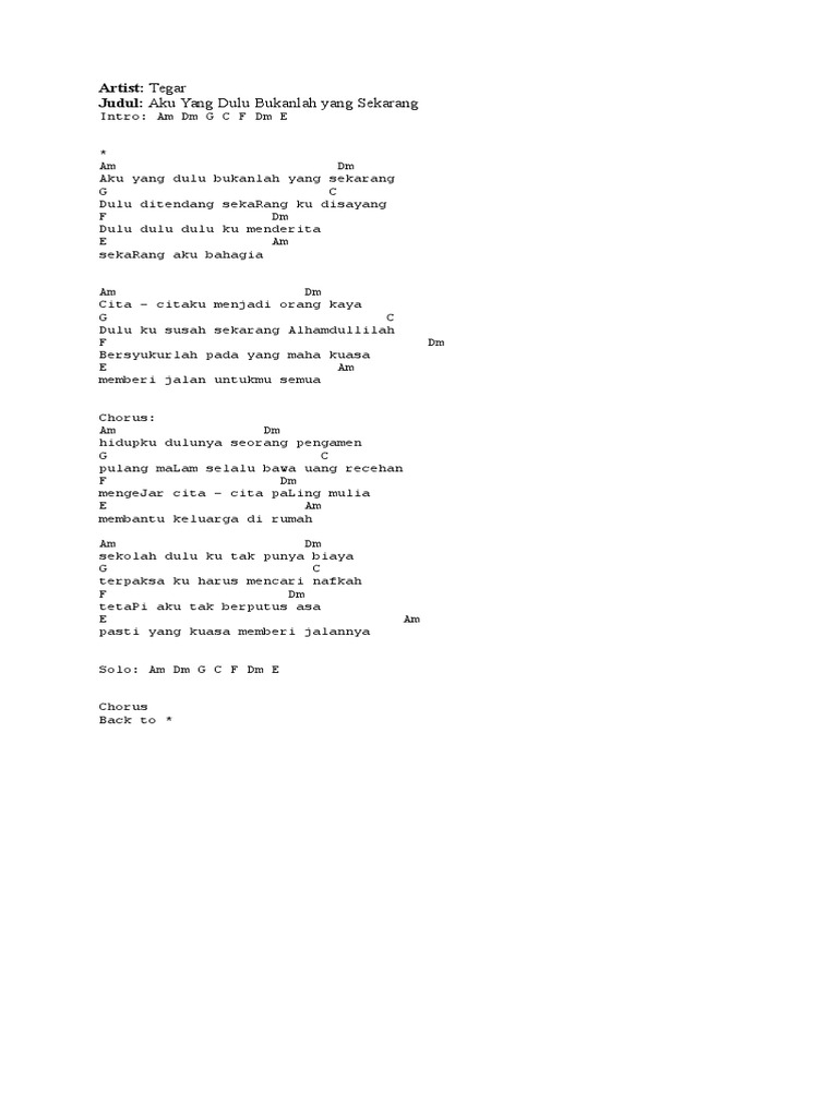 Am dm hidupku dulunya seorang pengamen g c pulang malam selalu bawa uang recehan f dm mengejar. Buat nura neylia, ghazali bukan lagi ghazali yang dikenali dulu. Aku rindu kau yang dulu rama citronella. Aku yang dulu bukan layang sekarang mp3 & mp4. Tegaraku yang dulu bukanlah sekarang#dady _djbabah _zbc lagu jiwang indonesia tegar#zbc#uvm#music menyatukan persahabatan dunia#uvm.