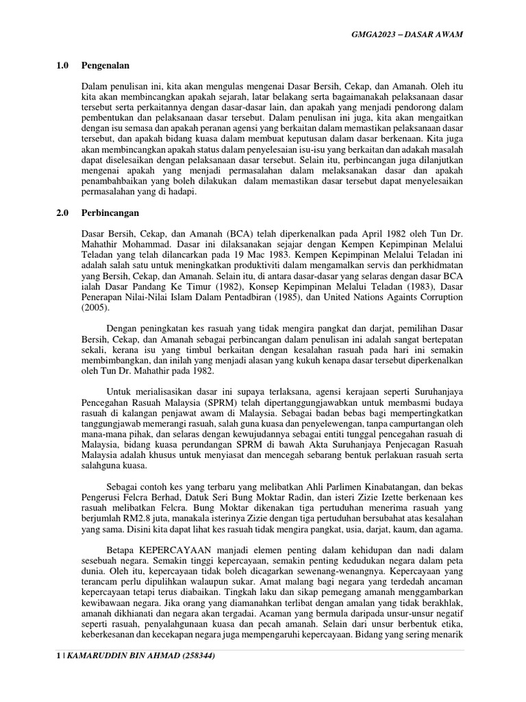 Dasar bersih, cekap dan amanah objektif implikasi pelaksanaan 1.